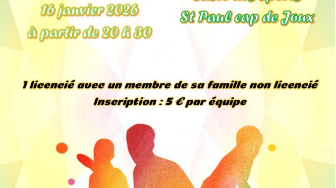 Le vendredi 16 janvier au gymnase de St Paul Cap de Joux, le club organise son 1er Tournoi des Famille à partir de 20h30.